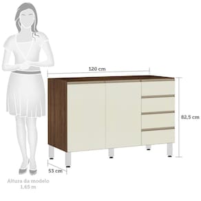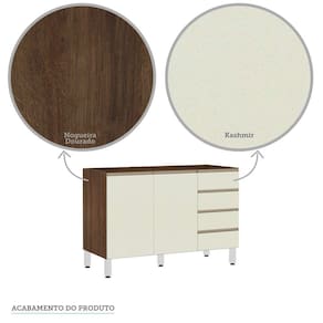 Características Corpo/Caixaria: MDP - Nogueira Dourado - FF. Frontais: MDP - Acabamentos em BP. Dobradiças: Ø35mm Slow motion. Puxadores: Alumínio Gola - Inox. Pés: P S - Cromado Corrediças Telescópicas: Abertura Total das Gavetas. Gavetas: 4 Porta: 2 Prateleira: 1 Não acompanha tampo de Pia Montagem com Minifix, Parafusos e cavilhas.