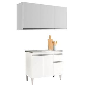 Balcão de Pia Tatiane 100cm e Armário Aéreo Andréia 3 Portas Branco Brilho - AJL