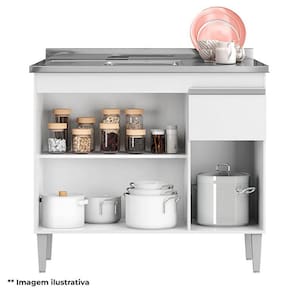 Balcão de Pia Tatiane 100cm Branco Brilho - AJL
