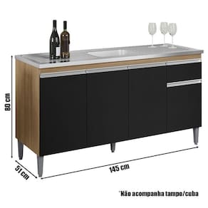 Balcão de Pia Tatiane 145 cm Amendoa Preto - AJL