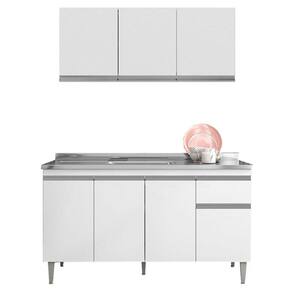 Balcão de Pia Tatiane 145 cm e Armário Aéreo Andréia 3 Portas 120 cm Branco Brilho - AJL