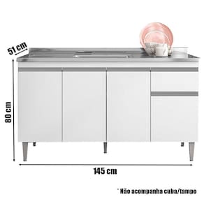 Balcão de Pia Tatiane 145 cm Branco Brilho - AJL- Desenvolvido 100% em MDP