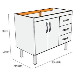 Armário Balcão de pia Tóquio 95,2cm Branco - A. J. Rorato