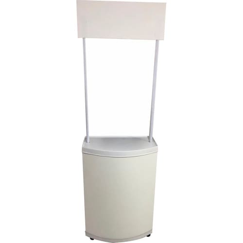 Balcão estruturado em PP corpo com tampos moldados em ps 3mm Depósito fechado com uma prateleira interna. Rodízios giratórios e hastes de PVC para sustentação da testeira superior. Fornecido desmontado. Acompanha manual demontagem. Embalado em bolsa e caixa de papelão. Dimensões 665 x 380 x 2100 mm Área para aplicação de arte -Frontal : 690 x 840 mm -Laterais: 270 x 840 mm 2 -Testeira: 665 x 245 mm -Porta de MDF Branco 3mm estruturada com perfis de PVC. -Fechado com Cadeado com 2 chaves para evitar extravio -Bolsa para transporte de TNT Preto com alça e bolso contendo um manual de montagem. -Prateleira interna de MDF 6mm Branco nas duas faces. Marca: Não Informado