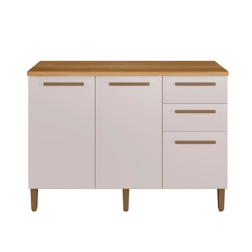 Amplo espaço interno o Balcão Diamante foi projetado para deixar sua cozinha do seu jeito. Gavetas com corrediça telescópicas, 4 portas com prateleiras internas, ele será a opção perfeita na sua cozinha.\nEspecificações do produto Montado: Altura: 89 Cm Largura: 120Cm Profundidade: 50 Cm Peso: 44Kg\nDetalhes do Produto: Garantia: 3 meses Material da estrutura: MDF Tampo de MDF 25MM Prateleira: 01 Pés reguláveis Corrediças telescópicas Tampo 25mm\nObservações: Não oferecemos serviço de montagem, mas todos os produtos possuem manual de montagem com o passo a passo. Recomendamos contratar um profissional de montagem. Pode existir alguma diferença de tonalidade entre a foto e o produto, devido ao tratamento de imagens e à calibração de cores do monitor.