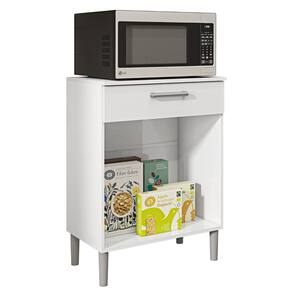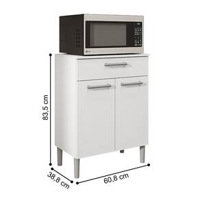 O Balcão é produzido em MDP, com madeira reconstituída, que respeita o meio ambiente. Composto de duas portas e uma gaveta onde são utilizadas dobradiças e corrediças 100% metálicas, acompanha tampo que pode ser utilizado como bancada para eletro portáteis ou outros utensílios. Os puxadores são ergonômicos em plástico resistente (poliestireno) e acabamento em cinza metalizado. Possui quatro pés fixos em plástico resistente (polipropileno) que garantem a estabilidade do produto. Todos processos com secagem em luzes UV que facilita a limpeza e conservação do produto.