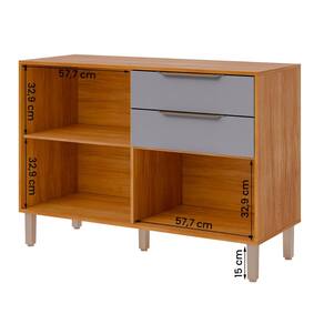 Material da estrutura: Tampos e laterais em MDF 15mm; Prateleira e laterais de gavetas em MDF 12mm;