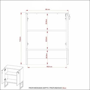 Dimensões do produto montado: Altura: 73,8cm | Largura: 60cm | Profundidade: 30cm *Você pode consultar as medidas internas na imagem técnica do produto. *As cores do produto podem sofrer variações de tonalidade de acordo com as configurações do seu dispositivo.