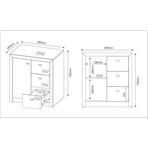 Dimensões do produto montado: Altura: 74,5cm | Largura: 68cm | Profundidade: 46,5cm *Você pode consultar as medidas internas na imagem técnica do produto. *As cores do produto podem sofrer variações de tonalidade de acordo com as configurações do seu dispositivo.