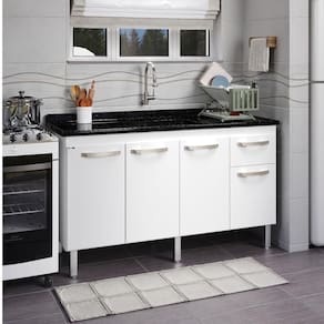 Sua composicao e em MDP 15mm com pintura externa branca em auto brilho e pintura interna fosca. Possui amplo espaco interno, permitindo que voce mantenha sua cozinha organizada com facilidade, equilibrando estilo e funcionalidade.