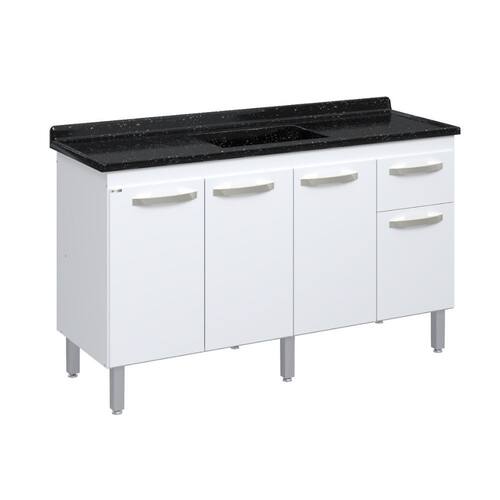 Balcão Flat De Cozinha Para Pia 4 Portas 1 gaveta 1,43 Rorato - Off White