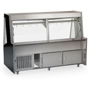 Balcão Frigorífico Premium Turino com Depósito GATP200ADAI Gelopar. Conservação e exposição de carnes não congeladas. Ideal para supermercado, açougues e similares. Temperatura: 0º a +7ºC. Refrigeração estática com evaporador aletado na parte superior e serpentina na base. Controle de temperatura: controlador eletrônico. Degelo manual. Permite montagem com prateleira aramada (2 níveis), tendal ou ambos. Iluminação: LEDs (interna), com interruptor. Tendal: Duplo em alumínio com ganchos. Bandejas em AI 430 acompanham o produto. Grades na base. Vidro frontal duplo temperado, baixo emissivo com aquecimento. Revestimento Externo: Laterais em aço injetado com pacote de vidro duplo temperado baixo emissivo, parte externa em pré-pintado em inox, parte interna aço inox espelhado. Revestimento interno em aço Inox 430. Vidros sujeitos a condensação da umidade do ar. Capacidade tendal: 50kg/metro por tendal. Capacidade base/ depósito: 50kg/metro. Capacidade das prateleiras (opcionais): 15kg/metro por prateleira. ATENÇÃO: Prateleiras não acompanham o produto. QUANTIDADE DE BANDEJAS: 7. DIMENSÕES BANDEJAS: 62,9x24x29cm. CAPACIDADE: 1019L. CAPACIDADE DO DEPÓSITO: 265L. TEMPERATURA: 0 a +7°C. CONSUMO: 11,60 kWh/dia. PESO: 188 kg. DIMENSÕES EXTERNAS (FxAxP): 200x146,2x96,5cm. Equipamento certificado conforme Portaria Inmetro nº 371/2009. Balcão Frigorífico Premium Turino com Depósito GATP200ADAI Gelopar é na Atau.