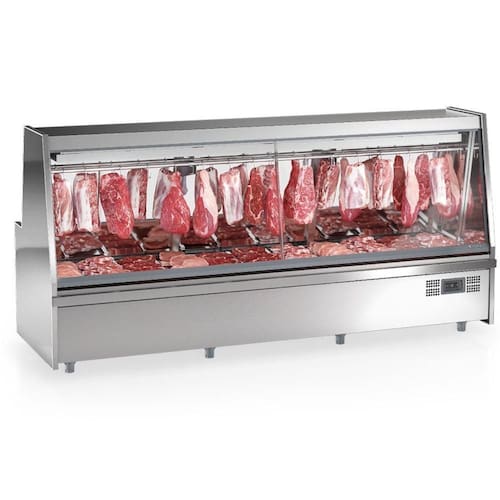 Balcão Frigorifico Turino Com Depósito Gats300d Gelopar Expositor De Carnes Inox 220v Balcão Frigorífico conservador e expositor de carnes Turino com depósito GATS300D Gelopar. Conservação e exposição de carnes não congeladas. Ideal para supermercado, açougues e . Temperatura: 0 a +7C. Refrigeração estática com evaporador aletado na parte superior e serpentina de cobre embutida na base. Degelo manual. Tendal: Duplo em alumínio com ganchos. Bandejas em AI 430 acompanham o produto. Permite montagem com prateleira aramada (2 níveis), tendal ou ambos. Iluminação: LEDs (interna), com interruptor. Grades na base. Vidro frontal temperado, baixo emissivo. Revestimento Externo: Laterais em aço injetado, parte externa em inox AI, parte interna aço inox espelhado. Revestimento interno em aço Inox 430. Vidros sujeitos a condensação da umidade do ar. Capacidade tendal: 50kg/metro por tendal. Capacidade base/ depósito: 50kg/metro. Capacidade das prateleiras (opcionais): 15kg/metro por prateleira. ATENÇÃO: Prateleiras não acompanham o produto. QUANTIDADE DE BANDEJAS: 11 em aço inox. DIMENSÕES BANDEJAS: 62,9x24x29cm. CAPACIDADE: 1546 Litros. TEMPERATURA: 0 a +7C. CONSUMO: 15,90 kWh/dia. PESO: 246 kg. DIMENSÕES EXTERNAS (CxAxL): 300x146,2x96,5cm. Equipamento certificado conforme Portaria Inmetro n 371/2009. Balcão Frigorífico conservador e expositor de carnes Turino com depósito GATS300D Gelopar é na Atau. Tamanho - 3,00 M Marca - Gelopar Modelo - GATS300D Capacidade - 1546 Litros Frente - 300cm Altura - 146,2cm Temperatura - 0 a +7C Peso - 246kg Profundidade - 96,5cm Consumo - 15,90 kWh/dia