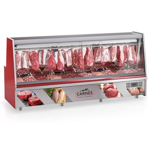 Balcão Frigorifico Turino Com Depósito Gats300d Gelopar Expositor De Carnes Vermelho 220v Balcão Frigorífico conservador e expositor de carnes Turino com depósito GATS300D Gelopar. Conservação e exposição de carnes não congeladas. Ideal para supermercado, açougues e . Temperatura: 0 a +7C. Refrigeração estática com evaporador aletado na parte superior e serpentina de cobre embutida na base. Degelo manual. Tendal: Duplo em alumínio com ganchos. Bandejas em AI 430 acompanham o produto. Permite montagem com prateleira aramada (2 níveis), tendal ou ambos. Iluminação: LEDs (interna), com interruptor. Grades na base. Vidro frontal temperado, baixo emissivo. Revestimento Externo: Laterais em aço injetado, parte externa em inox AI, parte interna aço inox espelhado. Revestimento interno em aço Inox 430. Vidros sujeitos a condensação da umidade do ar. Capacidade tendal: 50kg/metro por tendal. Capacidade base/ depósito: 50kg/metro. Capacidade das prateleiras (opcionais): 15kg/metro por prateleira. ATENÇÃO: Prateleiras não acompanham o produto. QUANTIDADE DE BANDEJAS: 11 em aço inox. DIMENSÕES BANDEJAS: 62,9x24x29cm. CAPACIDADE: 1546 Litros. TEMPERATURA: 0 a +7C. CONSUMO: 15,90 kWh/dia. PESO: 246 kg. DIMENSÕES EXTERNAS (CxAxL): 300x146,2x96,5cm. Equipamento certificado conforme Portaria Inmetro n 371/2009. Balcão Frigorífico conservador e expositor de carnes Turino com depósito GATS300D Gelopar é na Atau. Tamanho - 3,00 M Marca - Gelopar Modelo - GATS300D Capacidade - 1546 Litros Frente - 300cm Altura - 146,2cm Temperatura - 0 a +7C Peso - 246kg Profundidade - 96,5cm Consumo - 15,90 kWh/dia