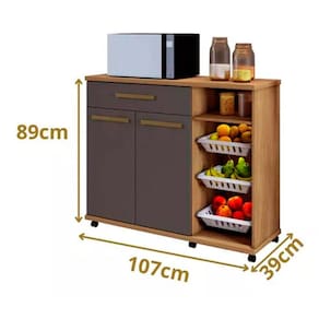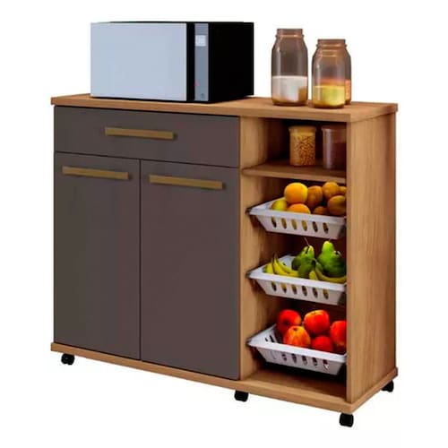 Veja que produto versátil, prático e funcional, além de belíssimo! Esta fruteira com balcão vai agregar mais requinte a sua cozinha com tampo super resistentes, que pode acomodar forno elétrico ou micro-ondas, possuindo ainda uma ampla gaveta com corrediça metálica, uma prateleira interna removível e fruteiras em plástico. Sua cozinha precisa de um móvel deste, não perca tempo peça já a sua!