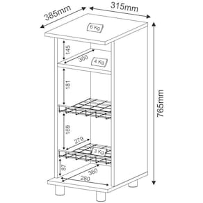 - Peso Suportado: Tampo: 6 Kg / Prateleira: 4 Kg / Cesto: 3 Kg.