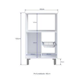 #127775; Benefícios e Funcionalidades Nicho Específico: Espaço dedicado para forno e micro-ondas, otimizando o uso do espaço e facilitando o acesso aos eletrodomésticos. Organização de Frutas: Cesto específico para frutas, mantendo-as organizadas e ao alcance. Amplo Espaço de Armazenamento: Com uma porta de bater, oferece espaço suficiente para organizar utensílios e mantimentos. Design Moderno: Estilo clean e funcional que se adapta a qualquer decoração, trazendo elegância e praticidade para sua cozinha. Durabilidade e Resistência: Acabamento de alta qualidade.