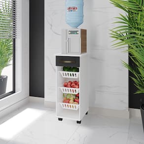 Balcão Fruteira Natalia Com 3 Fruteiras E 1 Gaveta - 89x43cm Branco/preto Balcão Fruteira Natalia com 3 Fruteiras e 1 Gaveta - 89x43cm Branco/Preto - Organize suas Frutas com Estilo e Praticidade - Altura 89cm Características Gerais do Produto: - Garantia: 7 Dias - Largura: 43 cm - Material do Puxador: Pvc - Material dos Pés: Rodizio - Material Utilizado: MDP - Necessita de Montagem?: Sim - Necessita Fixação na Parede?: Não - Numero de Pés: 4 - Número de Portas: 0 - Número de Prateleiras: 3 Fruteiras - Peso do Produto: 14 Kg - Profundidade: 38 cm - Quantidade de Gavetas: 1 Acompanha o produto: - - 1 Manual de Montagem - 1 Kit de Ferragens- 1 Fruteira- 4 Pés Rodizio Garantia: - 7 dias de garantia