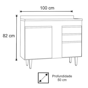 Balcão: 100 x 82 x 50 cm.