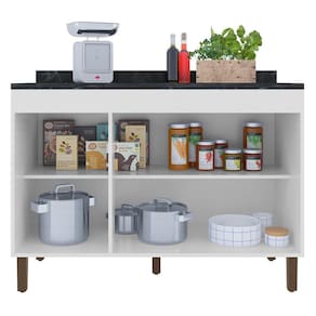 O Balcão com Tampo 119cm Karen 3 Portas, possui estrutura de ótima qualidade em MDP, com acabamento em pintura UV. Conta com dobradiças metálicas nas portas, pés com regulagem de altura, 01 prateleira interna para maior organização do ambiente, tampo de madeira e design moderno que torna sua cozinha muito mais bonita.