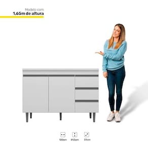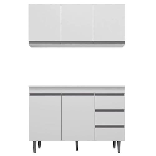 Renove sua cozinha com quem entende. O Balcão Gabinete Andréia com Tampo 120cm 2 Portas e Armário Aéreo 3 Portas da AJL é a opção certa para você que procura qualidade e beleza em um só produto. Com este conjunto seu ambiente ficará completo e elegante do jeitinho que você sempre sonhou. Produzido em MDP, o balcão e o armário possui acabamento em UV, que garante beleza e muito mais durabilidade ao produto. O Balcão Andréia conta com 2 portas convencionais, 3 gavetas com corrediças metálicas e puxadores embutidos, já o Armário Aéreo possui 3 portas e amplo espaço interno para acomodar utensílios de cozinha, não é demais? Sua cozinha merece o melhor! Qualidade e tradição que só a AJL tem. Compre já!