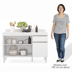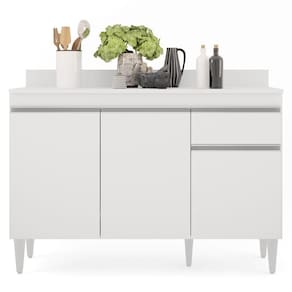 Balcão Gabinete 120cm Com Tampo 3 Portas 1 Gaveta Arizona Branco - Lumil Móveis