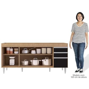 Quem está montando a mobília da casa sabe que esse cômodo às vezes é onde mais ficamos em dúvida sobre os complementos, não é? Mas que tal começar pelos itens essenciais como o balcão para pia? Sim, o modelo Arkansas Castanho/Preto da Lumil Móveis é uma ótima alternativa por 4 portas com puxador em perfil metálico contendo amplo espaço interno e 2 gavetas para seus talheres! Ou seja, elementos que fazem toda a diferença no dia a dia. Ah, e tudo em MDP com acabamento em pintura BP e pés em PVC para sustentação do móvel!!