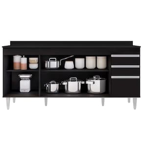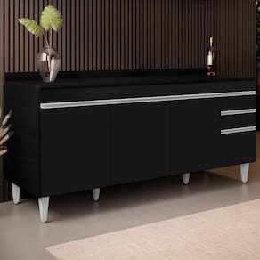 Em um cômodo que exige funcionalidade o Balcão Gabinete 180cm com Tampo Dallas Preto da Lumil é a escolha perfeita para você! Conheça os motivos!