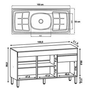 Balcão: 150 cm x 84,5 cm x 51,8 cm.