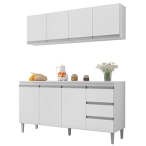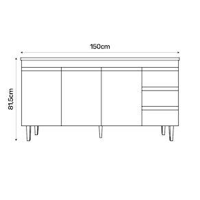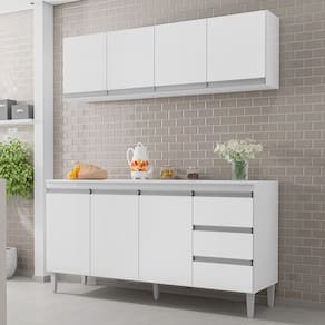 Renove sua cozinha com quem entende. O Balcão Gabinete Andréia com Tampo 150cm 3 Portas e Armário Aéreo 4 Portas da AJL é a opção certa para você que procura qualidade e beleza em um só produto. Com este conjunto seu ambiente ficará completo e elegante do jeitinho que você sempre sonhou. Produzido em MDP, o balcão e o armário possui acabamento em UV, que garante beleza e muito mais durabilidade ao produto. O Balcão Andréia conta com 3 portas convencionais, 3 gavetas com corrediças metálicas e puxadores embutidos, já o Armário Aéreo possui 4 portas e amplo espaço interno para acomodar utensílios de cozinha, não é demais? Sua cozinha merece o melhor! Qualidade e tradição que só a AJL tem. Compre já!