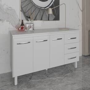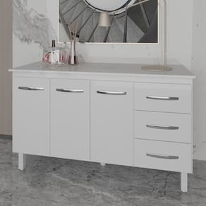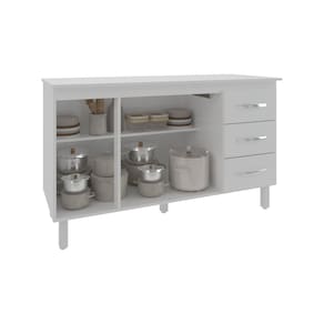Balcão Gabinete Armário Cozinha Carine Branco com Tampo Tampão 140 cm Mobília Decor Branco