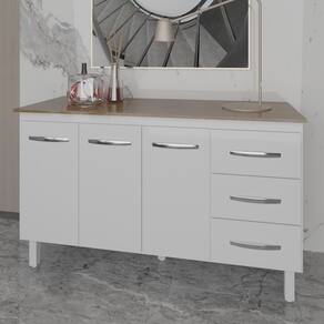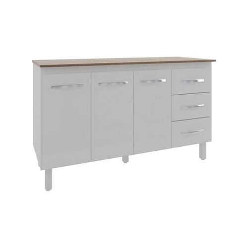Balcão Gabinete Armário Cozinha Carine Branco com Tampo Tampão 140 cm Mobília Decor Savana