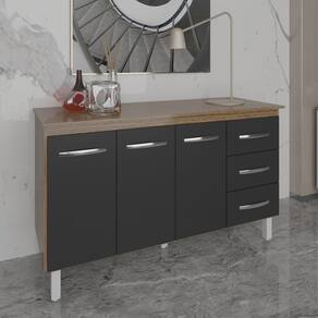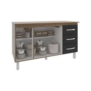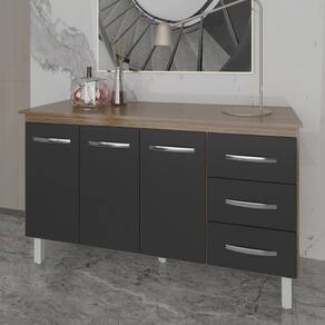 Balcão Gabinete Armário Cozinha Carine Savana Preto com Tampo Tampão 140 cm Mobília Decor Savana - Marrom