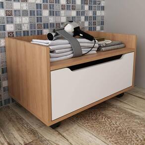 Detalhes do produto: - A fixação das peças e/ou acessórios é feita por parafusos, cavilhas e minifix; - Possui 1 gaveta que suporta 3kgs e corrediça metálica; - Possui 4 rodízios plásticos; - Garantia de 03 meses contra defeitos de fabricação; - Produto suporta até 18kgs; - Não acompanha cuba; - É de responsabilidade do montador seguir as instruções do manual de montagem, que são fundamentais para garantir a estrutura do móvel.