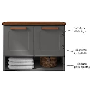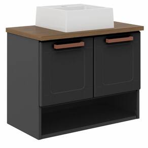 Balcão Gabinete Com Cuba Para Banheiro Nicho 2 Portas Grafite Bertolini