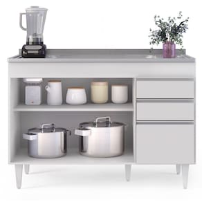 Procurando funcionalidade para sua cozinha? Vem conhecer o Balcão Gabinete com Pia Inox 120cm Michigan Branco, da Lumil!