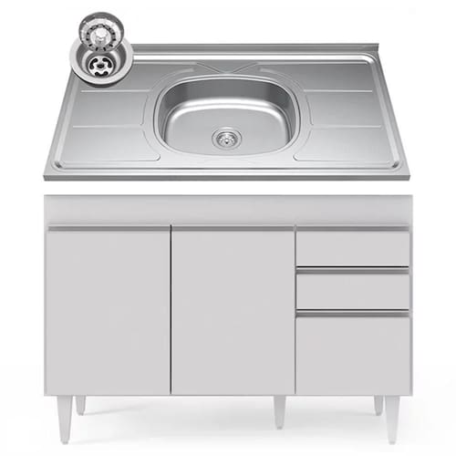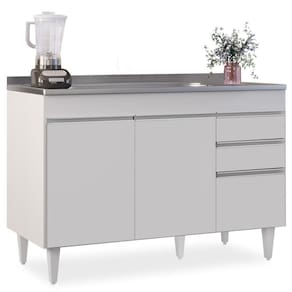 Procurando funcionalidade para sua cozinha? Vem conhecer o Balcão Gabinete com Pia Inox 120cm Michigan Branco, da Lumil!