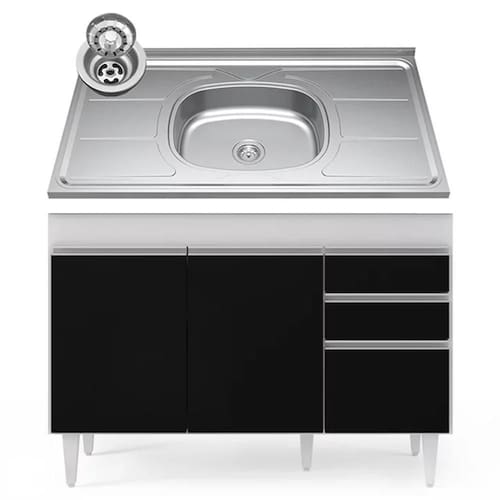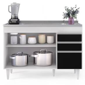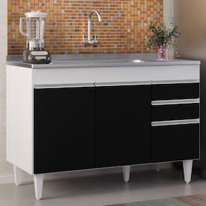 Procurando funcionalidade para sua cozinha? Vem conhecer o Balcão Gabinete com Pia Inox 120cm Michigan Branco/Preto, da Lumil!