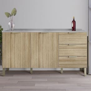 Que tal trazer mais funcionalidade e praticidade para a sua Cozinha? O Balcão Gabinete com Pia 160cm Charm K02 Freijó, da Mpozenato, é a opção perfeita para você!