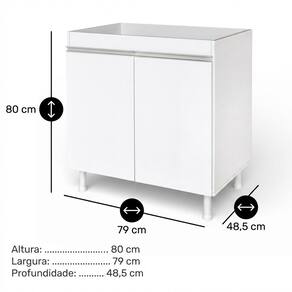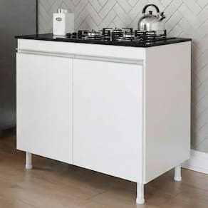 Com design versátil, pode ser utilizado como gabinete de cozinha, balcão para cooktop, cantinho do café, aparador compacto ou até mesmo em lavanderias, adaptando-se facilmente às diferentes necessidades do ambiente.