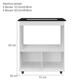 Abertura do tampo: 4 Bocas 53,5cm X 36cm / 5 Bocas 63,5cm X 36cm