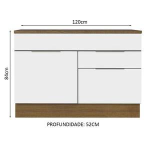 O Balcão de Pia de 120 cm da linha Stella da Madesa possui materiais de alto padrão como puxadores slim em alumínio, dobradiças metálicas com amortecimento e corrediças telescópicas de abertura total.