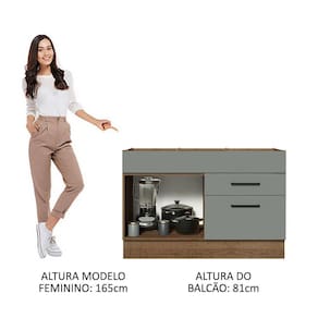 Este é o Balcão de Pia de 120 cm com duas gavetas e uma porta da linha Agata da Madesa. A profundidade é de 60 cm, pensada para se ter o máximo de aproveitamento do espaço interno.
