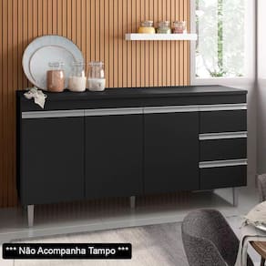 O Balcão é uma peça muito importante na cozinha, e ele possui estrutura em MDP e acabamento em pintura UV, ou seja, é uma ótima alternativa para os fãs de durabilidade e resistência. Além disso, ele também apresenta 3 portas convencionais e 3 gavetas de deslize suave e amplo espaço interno para guardar seus utensílios, te auxiliar e deixar sua rotina ainda mais dinâmica. Tudo de bom, né?