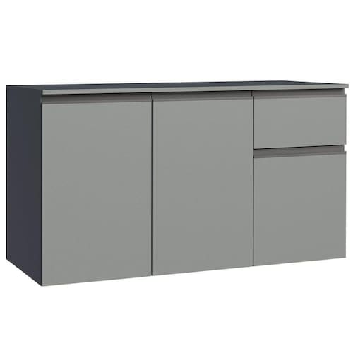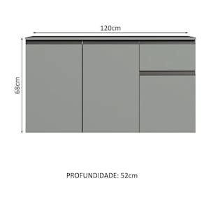 O Balcão de Pia de 120 cm Suspenso com três portas e duas gavetas da linha Nice da Madesa é espaçoso e perfeito para organizar panelas, utensílios e louças.