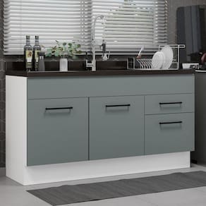 Cor: Cinza | Garantia: 3 meses contra defeitos de fabricação | Dimensões - Altura: 81 cm | Dimensões - Largura: 150 cm | Dimensões - Profundidade: 52 cm | Produto: Cozinha | Marca: Madesa | Peso aproximado: 51 kg | Material: MDP | RBN: Casa/Móveis/Móveis de Cozinha | Estado de Origem: RS | Material para Filtro: MDP | Conteúdo da embalagem: 1 Balcão para Cozinha | Instruções/Cuidados: Utilize um pano limpo, levemente umedecido e seque em seguida a superfície. Não produtos químicos ou abrasivos para a limpeza. Recomendamos polir seu móvel com lustra-móveis duas a três vezes por ano. | Quantidade de gavetas: 2 | Quantidade de portas: 2 | Produto precisa de Montagem?: Sim | Inclui tampo: Não | Altura do Produto com Embalagem (cm): 19.2 | Largura Produto Com Embalagem (cm): 54.8 | Comprimento Produto Com Embalagem (cm): 160.2 | Descrição do Tamanho: 81 cm x 150 cm x 52 cm | Nome do Simples no Fornecedor: Balcão Gabinete de Pia Madesa Agata 150 cm 2 Portas e 2 Gavetas (Sem Tampo e Pia) - Branco/Cinza | Ubicação do móvel: Inferior | | | Peso Produto Com Embalagem (Kg): 51 | Fabricante: Madesa Cor: Branco/Cinza