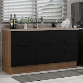 Cor: Preto | Garantia: 3 meses contra defeitos de fabricação | Dimensões - Altura: 81 cm | Dimensões - Largura: 150 cm | Dimensões - Profundidade: 52 cm | Produto: Cozinha | Marca: Madesa | Peso aproximado: 51 kg | Material: MDP | RBN: Casa/Móveis/Móveis de Cozinha | Estado de Origem: RS | Material para Filtro: MDP | Conteúdo da embalagem: 1 Balcão para Cozinha | Instruções/Cuidados: Utilize um pano limpo, levemente umedecido e seque em seguida a superfície. Não produtos químicos ou abrasivos para a limpeza. Recomendamos polir seu móvel com lustra-móveis duas a três vezes por ano. | Quantidade de gavetas: 2 | Quantidade de portas: 2 | Produto precisa de Montagem?: Sim | Inclui tampo: Não | Altura do Produto com Embalagem (cm): 19.2 | Largura Produto Com Embalagem (cm): 54.8 | Comprimento Produto Com Embalagem (cm): 160.2 | Descrição do Tamanho: 81 cm x 150 cm x 52 cm | Nome do Simples no Fornecedor: Balcão Gabinete de Pia Madesa Agata 150 cm 2 Portas e 2 Gavetas (Sem Tampo e Pia) - Rustic/Preto | Ubicação do móvel: Inferior | | | Peso Produto Com Embalagem (Kg): 51 | Fabricante: Madesa Cor: Rustic/Preto