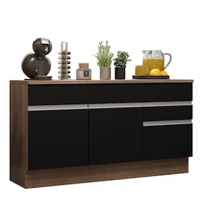O acabamento da estrutura é em amadeirado Rustic e as portas e frentes são pretas. É feito com a Pintura Poliéster de sete camadas exclusiva da Madesa, um método ecológico e que protege o móvel dos efeitos contínuos da água e do calor.