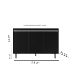 Características: Material da Estrutura: MDP Acabamento: Pintura UV Escala de Brilho: Fosco Possui 3 portas Dobradiças em aço Puxadores embutidos Pés em PVC com regulagem Corrediças metálicas Design moderno Acompanha Tampo: Não