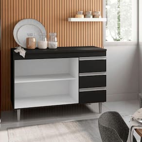 Balcão Gabinete De Pia Para Cozinha Sem Tampo 100cm Andréia Preto- Mabe Magazine